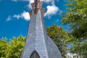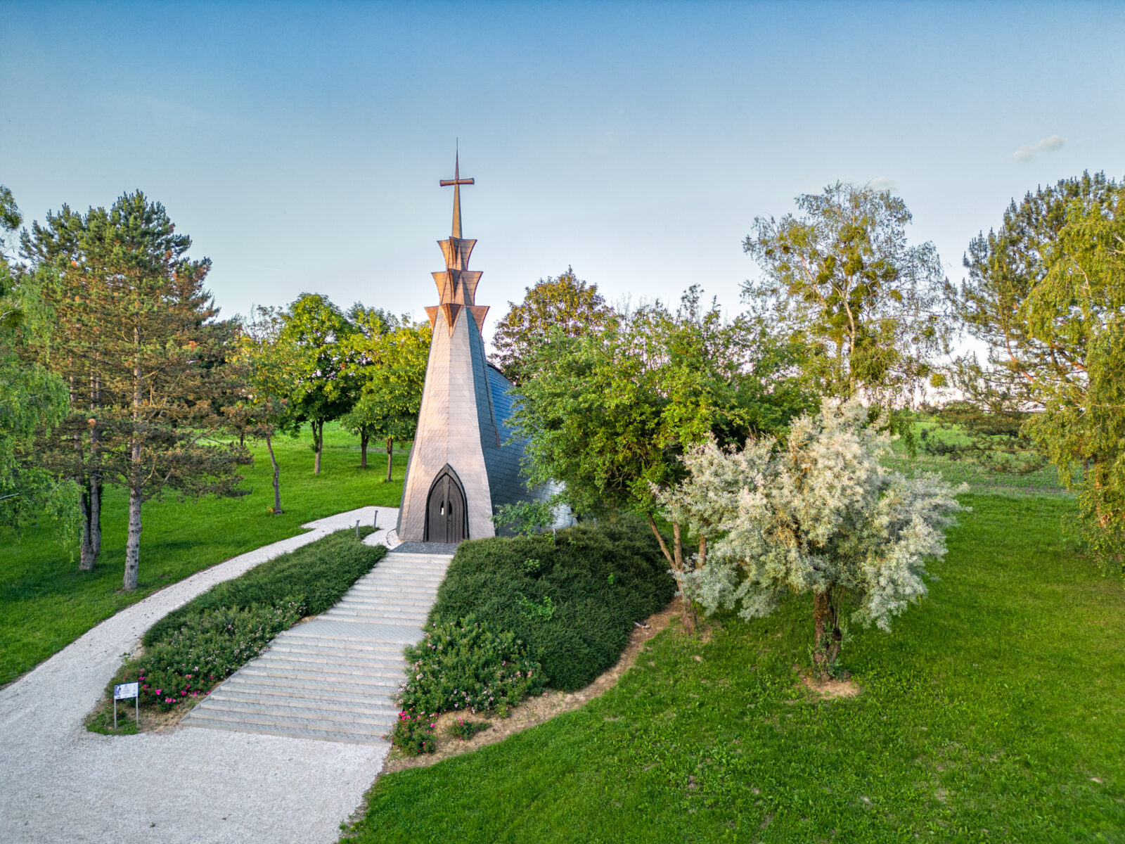 A gébárti liget látnivalója a 2019 nyarán felavatott kápolna, melyet a neves építész, Makovecz Imre halála előtt néhány évvel tervezett. Az épület az organikus építészet jegyeit viseli. A kápolna a fák lombkoronája közül kibukkanó, felfelé keskenyedő, hatszögletű tornyával hívogat. Érdemes megcsodálni különleges belső terét is, melyet ritmikusan ismétlődő pieta-körvonal díszít.