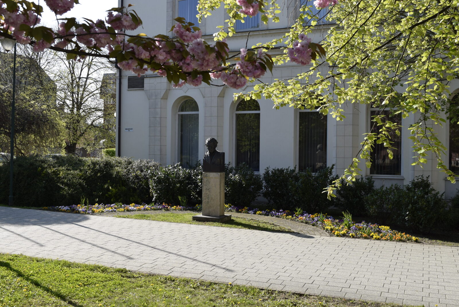 Opposite the Pontház, we come upon a small, flower-filled square. Formerly known as Centrum Square after the department store once located there, the square was renamed in 2004 to Dezső Keresztury Square, when a bust of the writer—created by Zsigmond Szórádi—was unveiled on the occasion of the 100th anniversary of his birth. At the end of 2025, the public space was incorporated into Széchenyi Square, and its former name was thus discontinued.