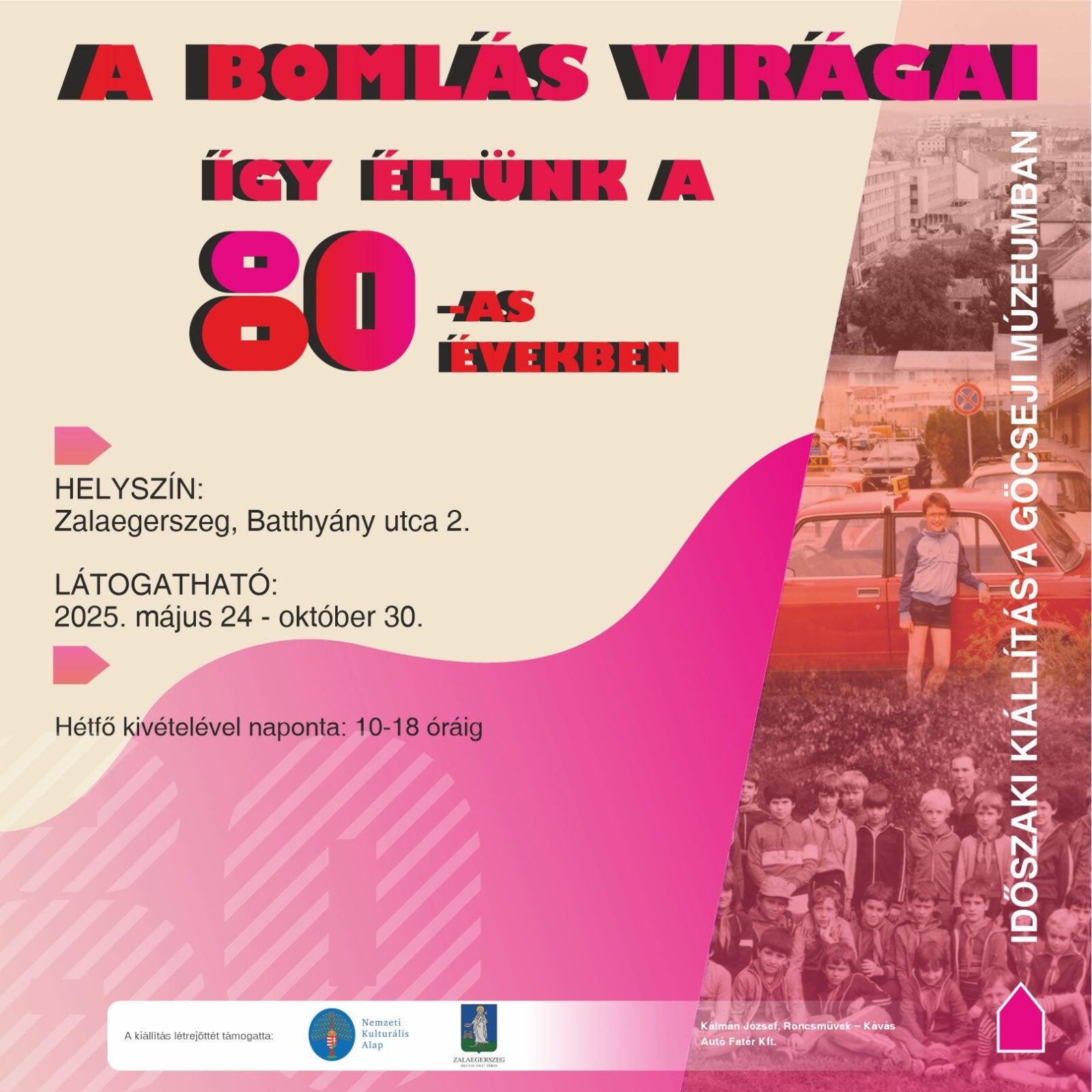Emlékeznek arra az évtizedre, amikor a nyolcórás műszak után a GMK-kban folytatódott a munka? Amikor a gyerekek kulccsal a nyakukban, nagy szabadságban bandáztak a játszótereken? Amikor a nők divatos dresszben és lábszárvédőben aerobikoztak munka után? És arra, amikor a fiatalok punkzenekarokat alapítottak, hogy világgá kiáltsák rendszerellenes érzéseiket? Amikor butikokban és magánzöldségeseknél lehetett hozzájutni a jobb minőségű árukhoz? Amikor végre világútlevelet kaptunk, és Gorenje fagyasztóládával, Grundig videómagnóval tértünk haza Ausztriából? Az évtized végén pedig rendszert váltottunk. Igen, ezek voltak a nyolcvanas évek! Felkeltettük az érdeklődését? Jöjjön a zalaegerszegi Göcseji Múzeumba nosztalgiázni!