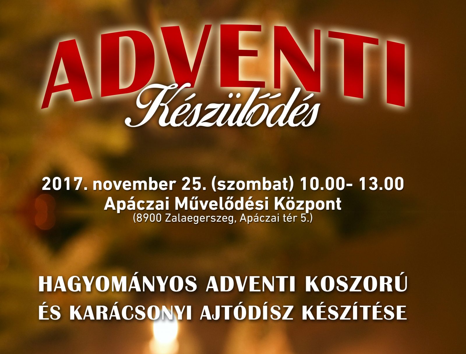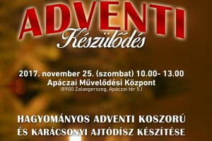 Az adventhez kötődő hagyományőrzés részeként adventi koszorúkészítő játszóház várja a város és a Kertváros családjait 2017. november 25-én, szombaton délelőtt 10 órától délután 13 óráig. A játszóház alkalmával a résztvevők elkészíthetik adventi koszorújukat és karácsonyi ajtódíszüket.