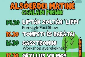ALSÓERDEI MATINÉ és Családi Piknik július 17-én vasárnap Zalaegerszegen az újonnan nyílt Alsóerdei Sport-és Élményparkban.