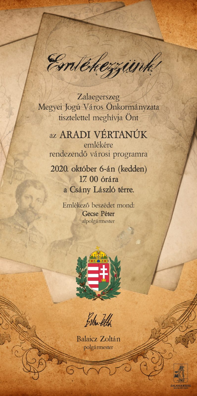 Aradi Vértanúk Emléknapja alkalmából rendezendő városi program