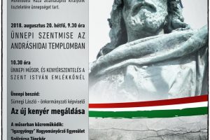 Az ünnepi szentmise után a helybéliekkel közösen a Szent István utcai emlékműnél Plébános úr kíséretében tartjuk megemlékezésünket: kenyérszentelés, ünnepi köszöntő
