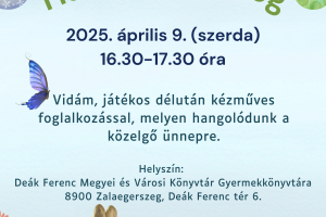 A könyvtár alapszolgáltatásai mellett változatos, interaktív, játékos ismeretterjesztő előadásokkal, irodalmi programokkal, valamint kézműves foglalkozásokkal várjuk az érdeklődőket 16.30 – 17.30 között.