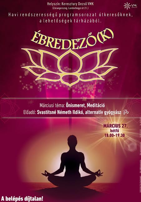Márciusi téma: Önismeret; meditáció. Előadó: Svastitsné Németh Ildikó, alternatív gyógyász ॐ
