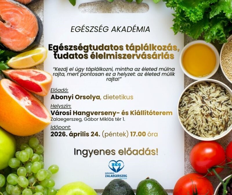 Szeretettel várunk minden érdeklődőt az ingyenes Egészség Akadémia áprilisi rendezvényére, 2026. április 24-én (péntek), 17:00 órától a Városi Hangverseny- és Kiállítóterembe (Zalaegerszeg, Gábor Miklós tér 1.).
