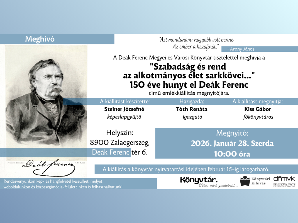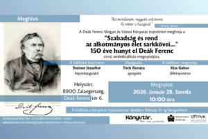 Szeretettel várjuk az érdeklődőket a “Szabadság és rend az alkotmányos élet sarkkövei…” című emlékkiállítás megnyitójára.