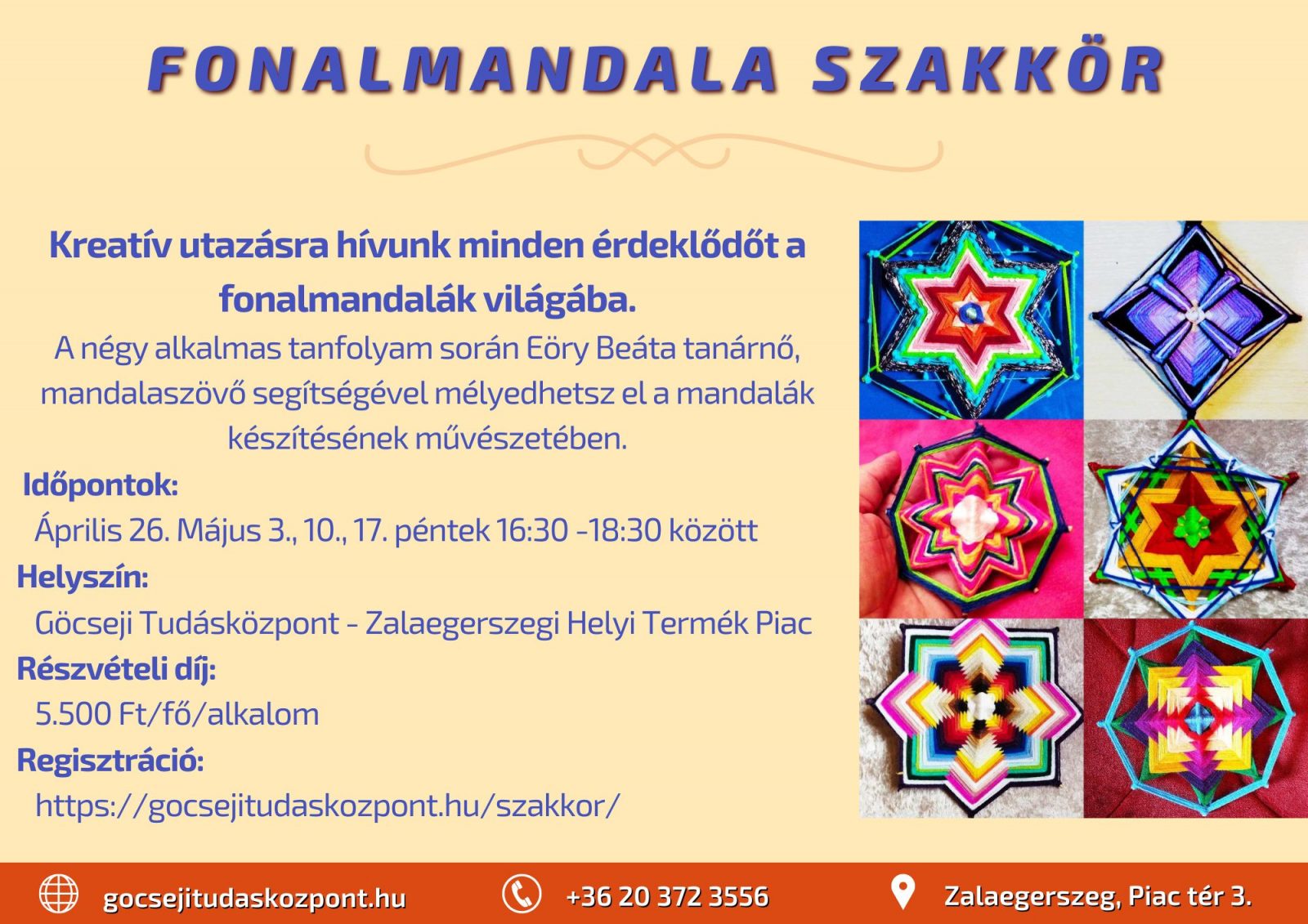 Kreatív utazásra hívunk minden érdeklődőt a fonalmandalák világába. 🪢 A négy alkalmas tanfolyam során Eöry Beáta tanárnő, mandalaszövő segítségével mélyedhetsz el a mandalák készítésének művészetében.