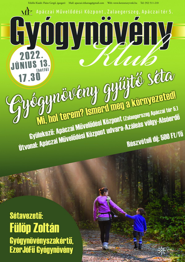 A séta kb. 2 óra hosszú, könnyű terepen, az Apáczai Művelődési Központ udvarától indul. A séta során megismerhetik a környezetünkben található gyógynövényeket, begyűjtésüknek, tárolásuknak, felhasználásuknak módját.