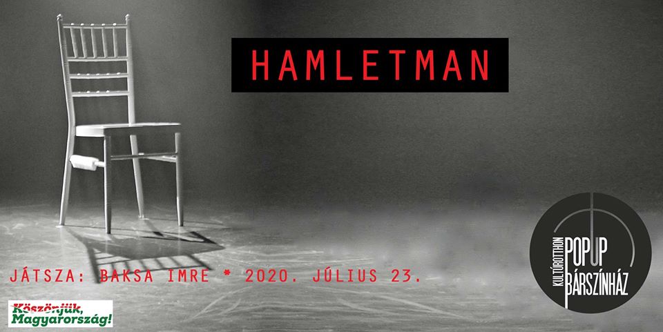 Shakespeare Hamlet című tragédiájának előadója Baksa Imre, aki monodrámaként adja elő a tíz szereplőre húzott Shakespeare-szöveget, Nádasdy Ádám (és helyenként Arany János) fordításában. Az előadás végigmegy a történeten, és annak legfőbb kérdésein: titok, bűn, a jogos bosszú végrehajtásának vagy elmulasztásának erkölcsi problémája. A karakterek sok ötlettel elevenednek meg, így szolgálva a könnyebb megértést és azonosulást. Az előadás végére úgy tűnhet: minden fordulat Hamlet fejében játszódott le, s ez még erősebbé teszi súlyos magányát. Baksa Imrének ugyanakkor sikerül sok humorral elegyítenie a játékot, finoman egyensúlyozva tragikum és komikum határán.