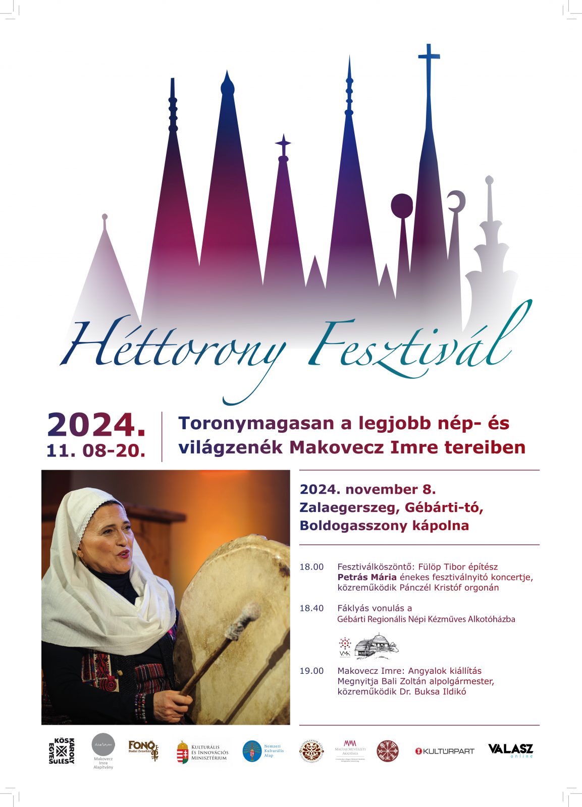 18.00 – Fesztiválköszöntő: Fülöp Tibor építész, ezt követi Petrás Mária énekes fesztiválnyitó koncertje, közreműködik Pánczél Kristóf orgonán