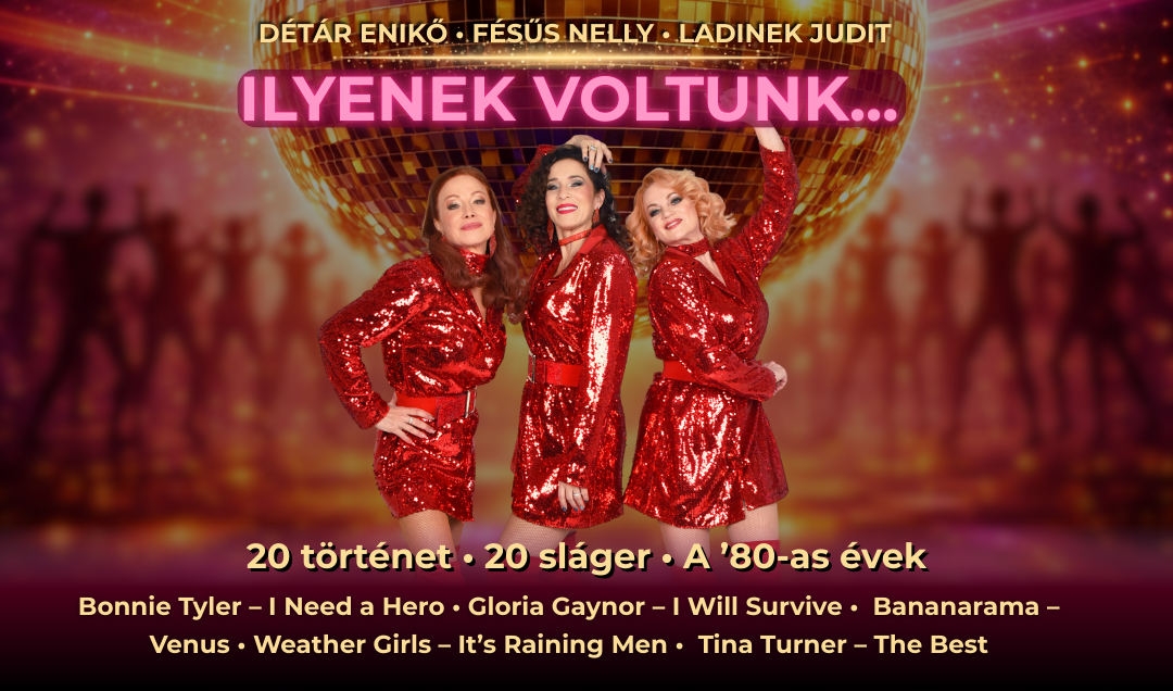 Az Ilyenek voltunk… egy zenés, történetekkel átszőtt nosztalgiaest, ahol Détár Enikő, Fésüs Nelly és Ladinek Judit visszarepülnek fiatalságuk egyik legszínesebb korszakába: a ’80-as évekbe.