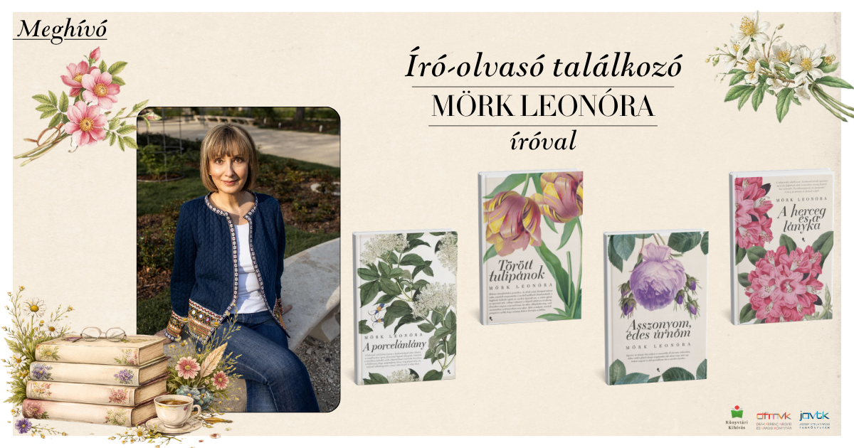 Szeretettel meghívjuk minden kedves olvasónkat egy különleges délutánra, ahol vendégünk lesz a történelmi regények és lélektani történetek népszerű írója, Mörk Leonóra.