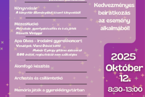 Különleges vasárnapi programra várjuk az érdeklődőket, ahol a könyvek és a közösségi élmények kerülnek a középpontba. A Könyves Vasárnap az Országos Könyvtári Napok részeként valósul meg, színes programokkal kicsiknek és nagyoknak.