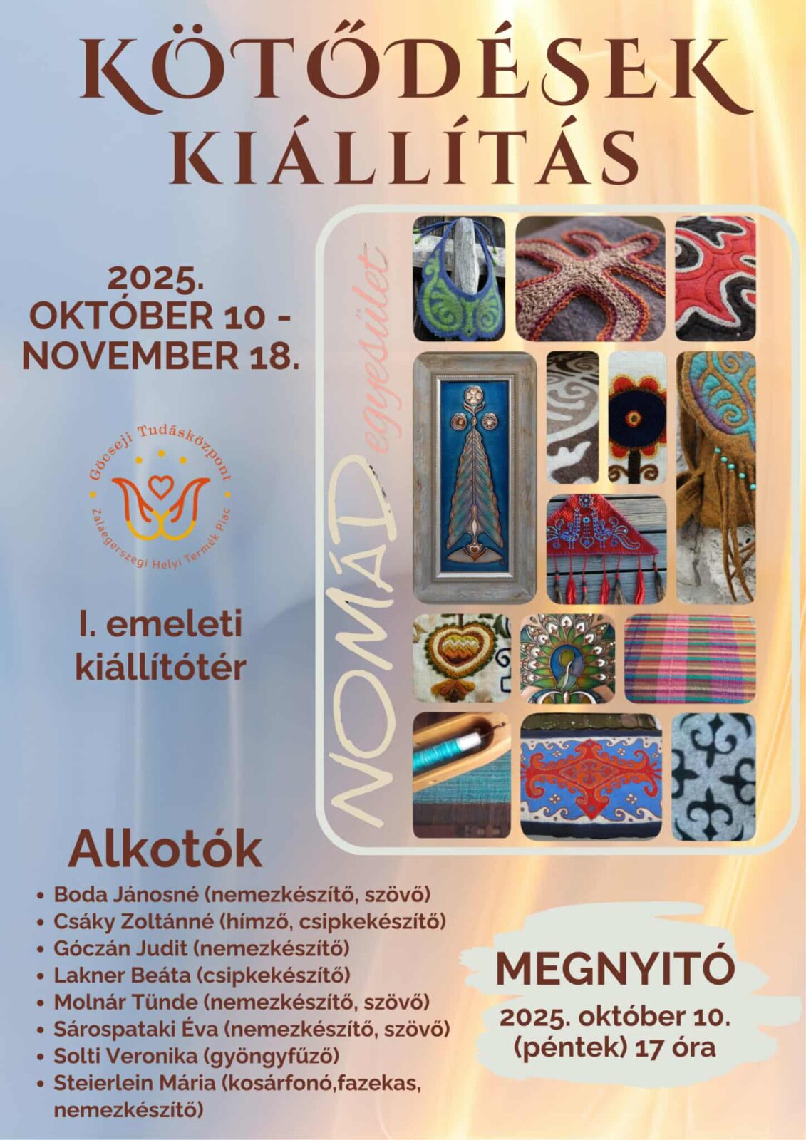 A Nomád Művészeti Egyesület kiállítása nyílik meg 2025. október 10. pénteken 17.00 órakor a Göcseji Tudásközpont – Zalagerszegi Helyi Termék Piac kiállítóterében.