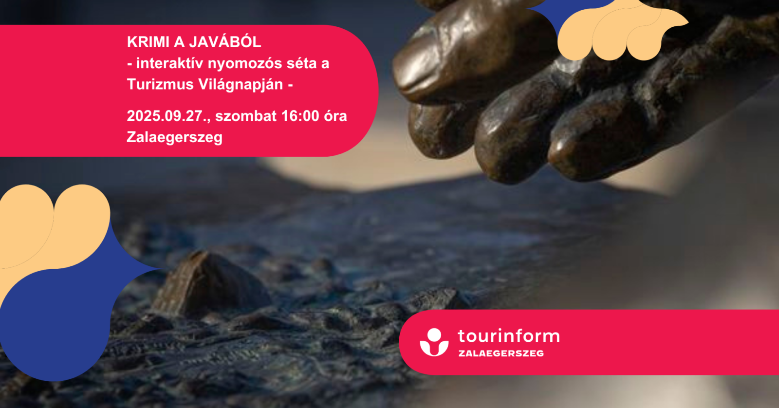 A “KRIMI A JAVÁBÓL” elnevezésű interaktív programunk során nem csupán Zalaegerszeg rejtett kincseit és történeteit fedezzük fel, hanem egy megoldatlan bűnügy aktáját is lezárjuk – közösen.