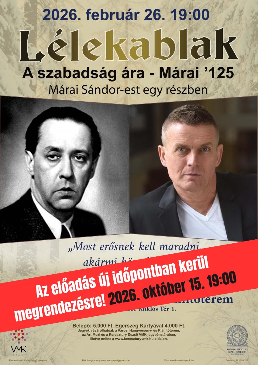 Az eredetileg 2026. február 26-ra meghirdetett előadás 2026. október 15-én, 19:00 órakor várja a közönséget.