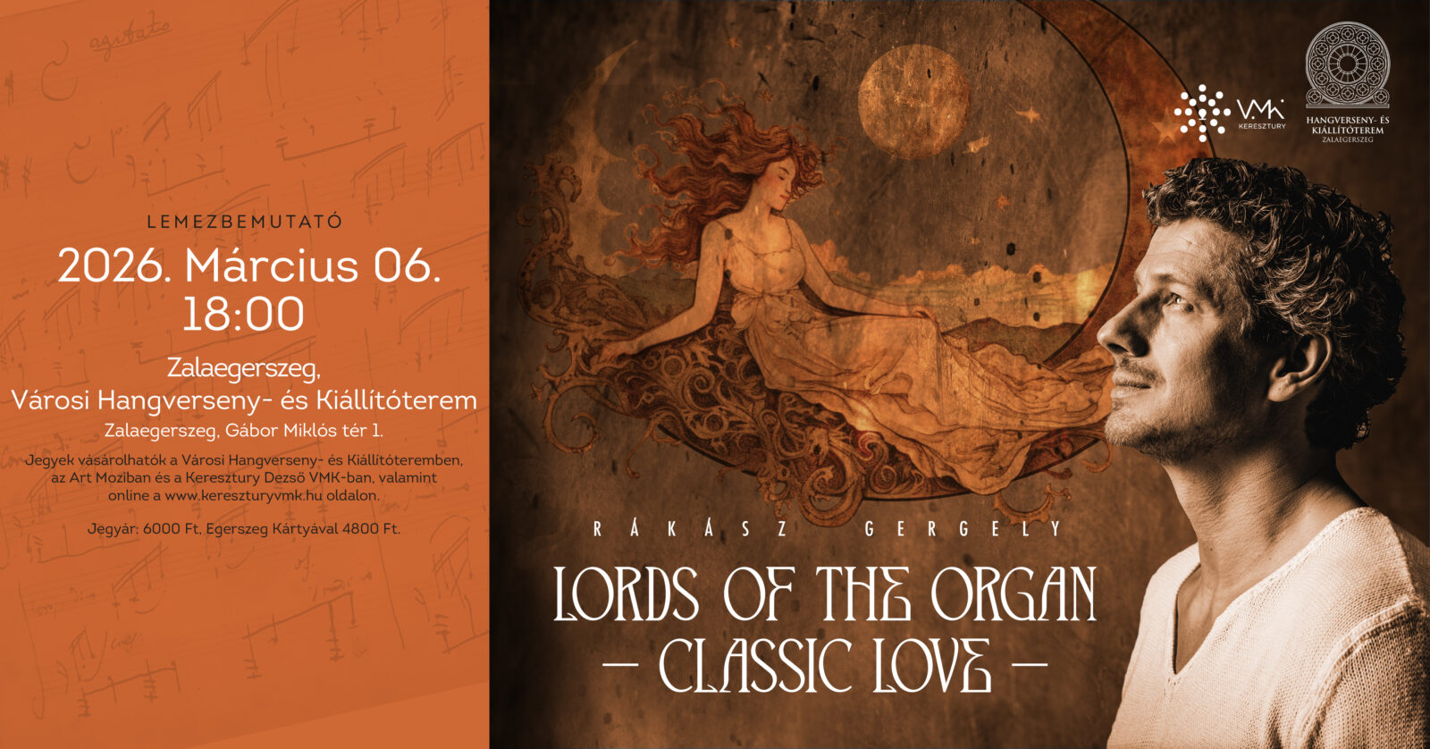 Belépő: 6.000 Ft, Egerszeg Kártyával 4.800 Ft. Jegyek válthatóak nyitvatartási időben a Hangversenyterem, a Keresztury Dezső VMK és az Art Mozi jegypénztáraiban, valamint online a www.kereszturyvmk.hu oldalon.