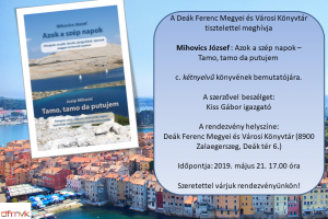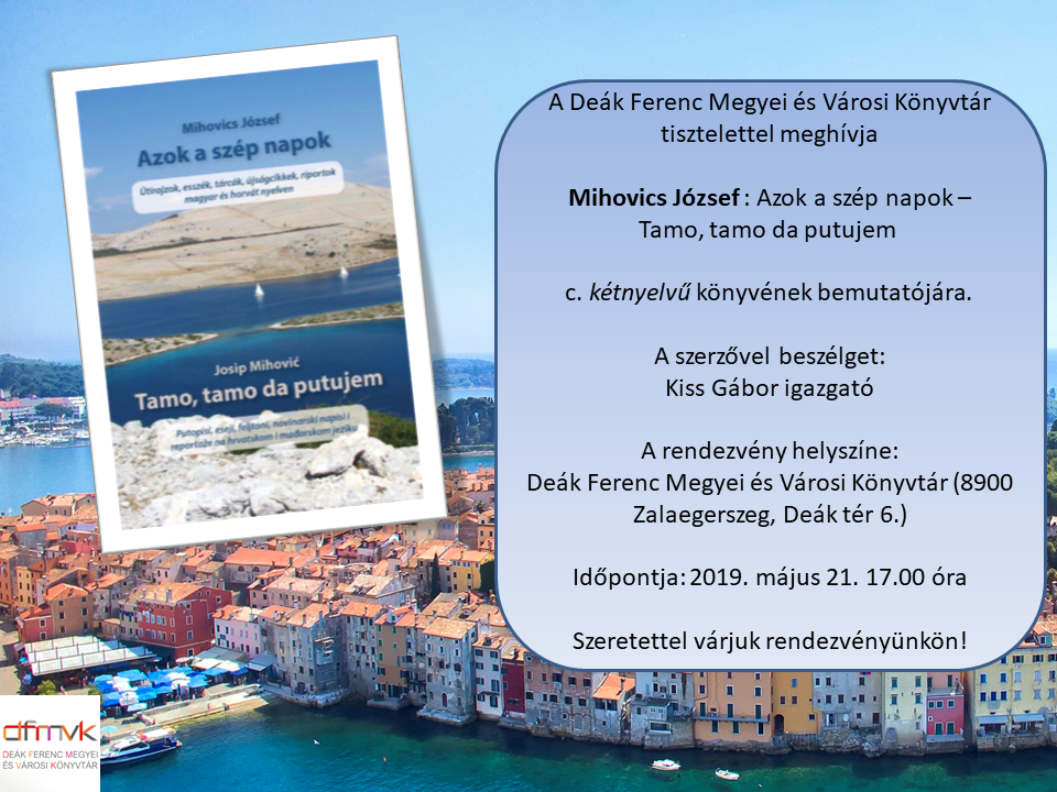 Mihovics József: Azok a szép napok – Tamo tamo, da putujem című kétnyelvű könyvének bemutatója a Deák Ferenc Megyei és Városi Könyvtárban, május 21-én, 17 órakor kezdődik.