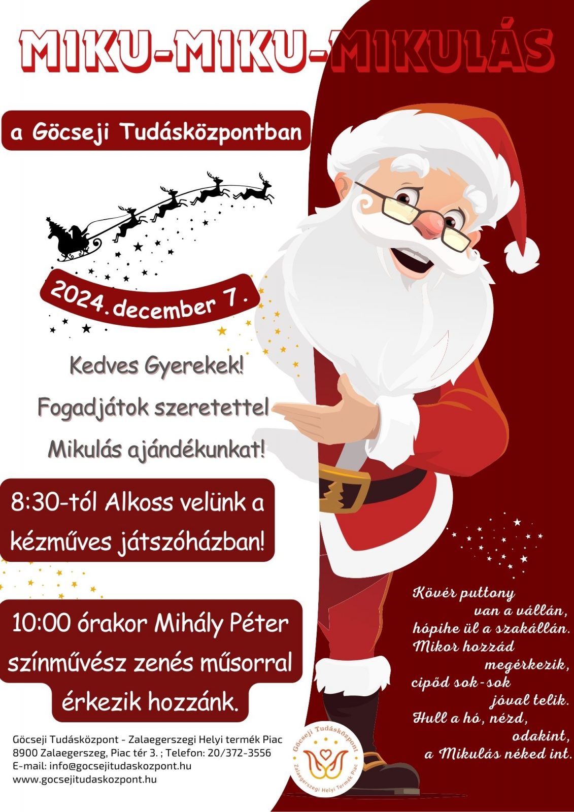 Add hozzá a naptáradhoz 2024-12-07 2024-12-07 Europe/Budapest Mikulás móka a Göcseji Tudásközpontban