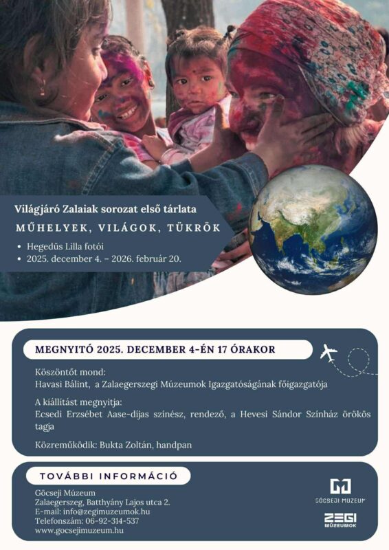 Hegedüs Lilla 30 éves koráig 34 országban járt, hátizsákkal, kamerával és nyitott szívvel. Bejárta Délkelet-Ázsiát, Indiát, Nepált, Perut és Európát – és útközben nemcsak a világot, hanem önmagát is felfedezte. Ez a különleges fotókiállítás is, amely három tematikus egységben mutatja meg az ember és a világ közös történetét. Az Utcák és arcok a tekintetek mögött rejlő történetekről mesél, a Tájak és csendek a természet időtlen nyelvét szólaltatja meg, míg az Élet és szertartás az ünnep és a mindennapi mozdulat szentségét idézi meg. A képek nem csupán a távoli helyekről szólnak, hanem arról, amit mindannyian hordozunk: a kapcsolódás vágyáról és a csend erejéről. A Belső utazás képei egyszerre útinapló, meditáció és hála – meghívás, hogy a látogató is elinduljon a maga belső útján.