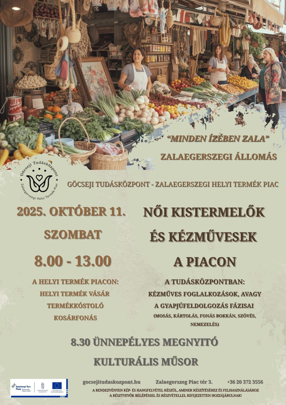 A “Minden ízében Zala” csatlakozó programjaként a rendezvénysorozat zalaegerszegi állomása a Göcseji Tudásközpont – Zalaegerszegi Helyi Termék Piac lesz