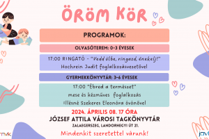 17.00 “Ébred a természet” mese és kézműves foglalkozás Illésné Szekeres Eleonóra óvónővel