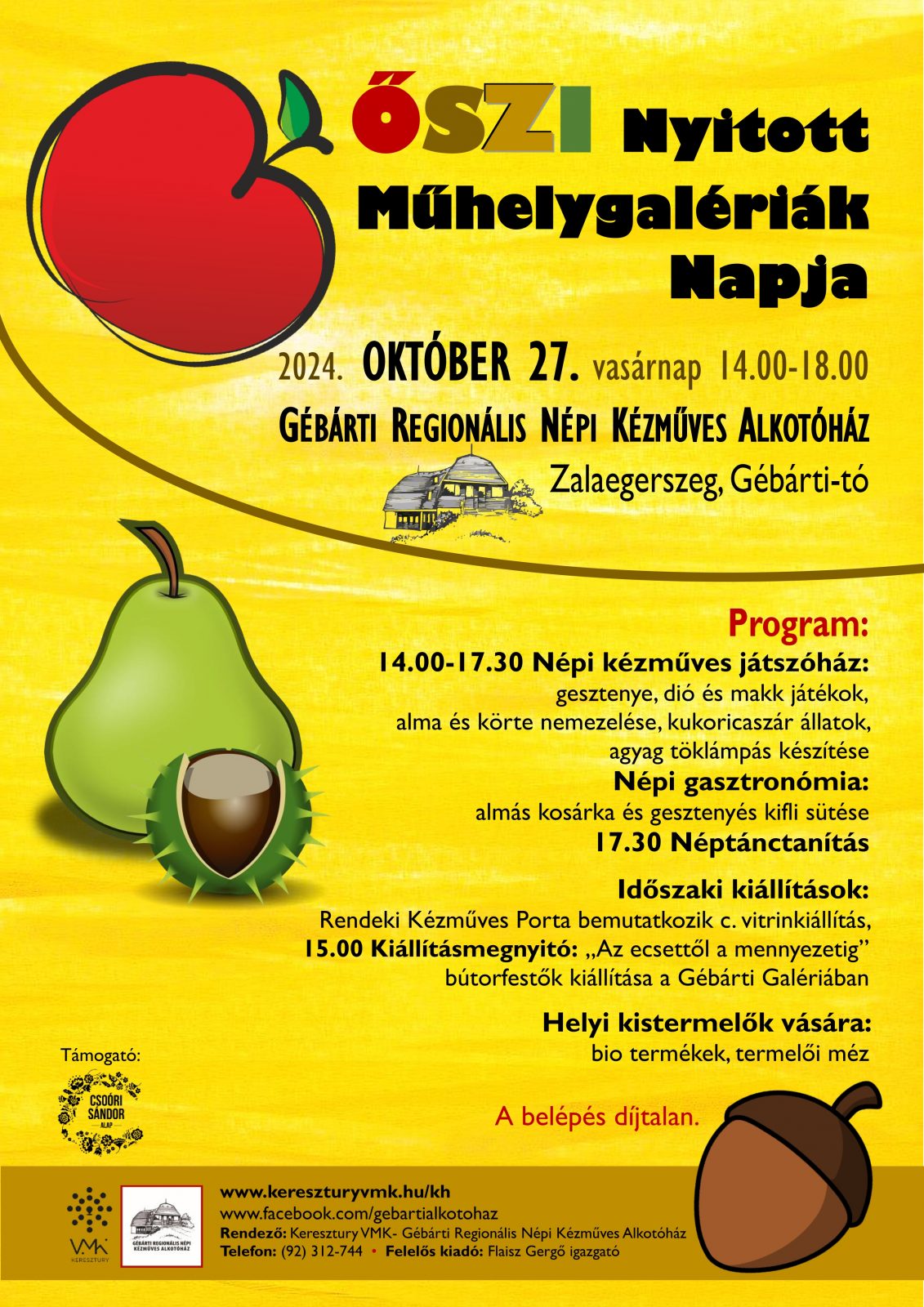 Helyszín: Gébárti Regionális Népi Kézműves Alkotóház (8900 Zalaegerszeg, Gébárti-tó)