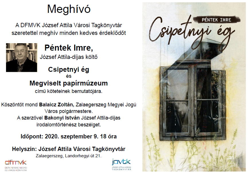 Add hozzá a naptáradhoz 2020-09-09 2020-09-09 Europe/Budapest Péntek Imre köteteinek bemutatója