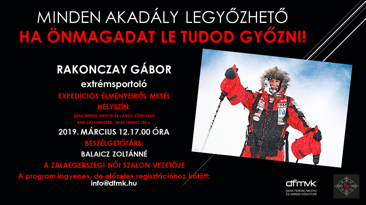 Add hozzá a naptáradhoz 2019-03-12 2019-03-12 Europe/Budapest Rakonczay Gábor extrém sportoló előadása