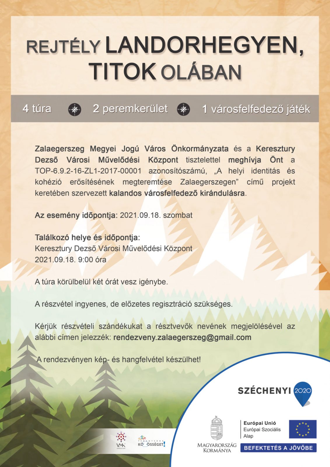 A részvétel ingyenes,ám előzetes regisztrációhoz kötött: a részvételi szándékot a rendezveny.zalaegerszeg@gmail.com e-mail címen kell jelezni.
