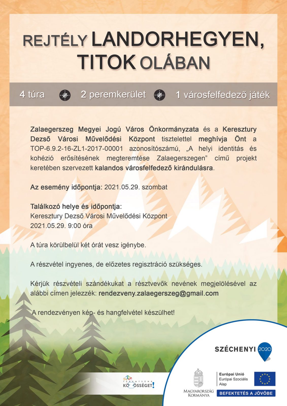 A részvétel ingyenes,ám előzetes regisztrációhoz kötött: a részvételi szándékot a rendezveny.zalaegerszeg@gmail.com e-mail címen kell jelezni.