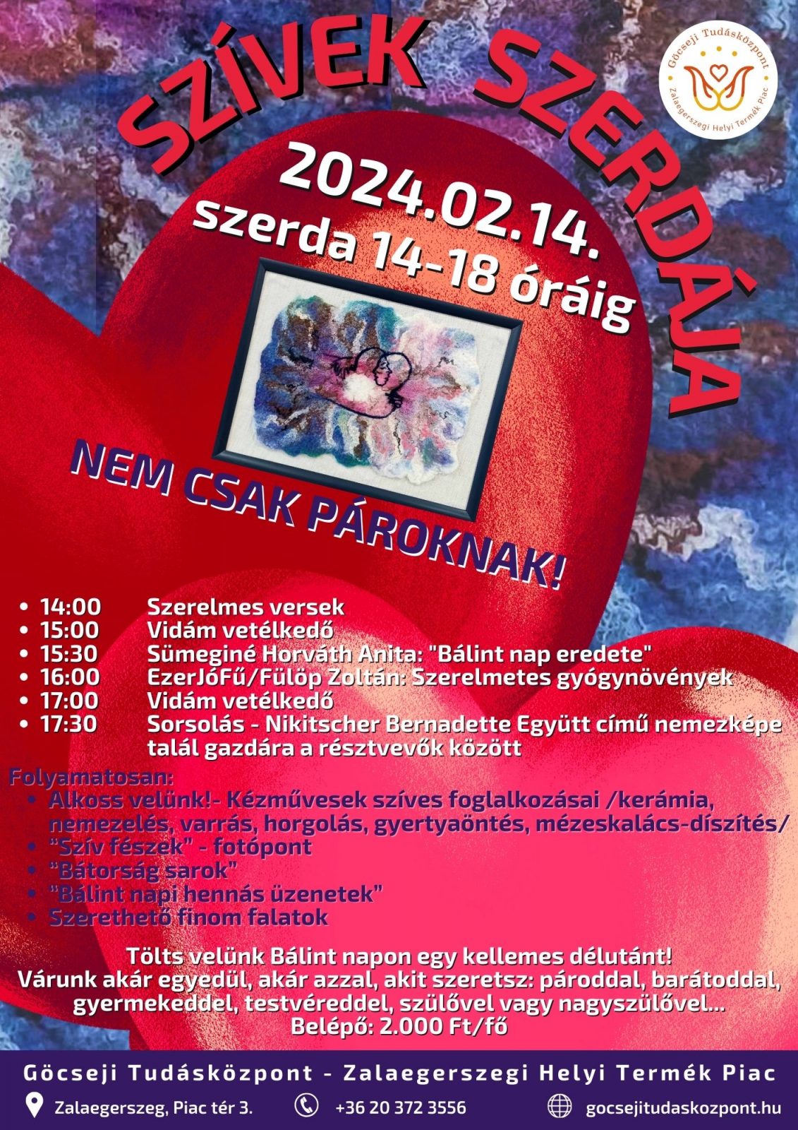 A Göcseji Tudásközpont – Zalaegerszegi Helyi Termék Piacon 2024. február 14-én, szerdán 14-18 óra között.