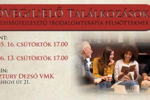 Csoportvezető: Németh Mária biblioterapeuta Belépő: 2000 Ft, Egerszeg Kártyával 1600 Ft Jegyek a Keresztury Dezső VMK, az Art Mozi és a Városi Hangverseny-és Kiállítóterem jegypénztáraiban kaphatók, illetve online a www.kereszturyvmk.hu oldalon válthatók.