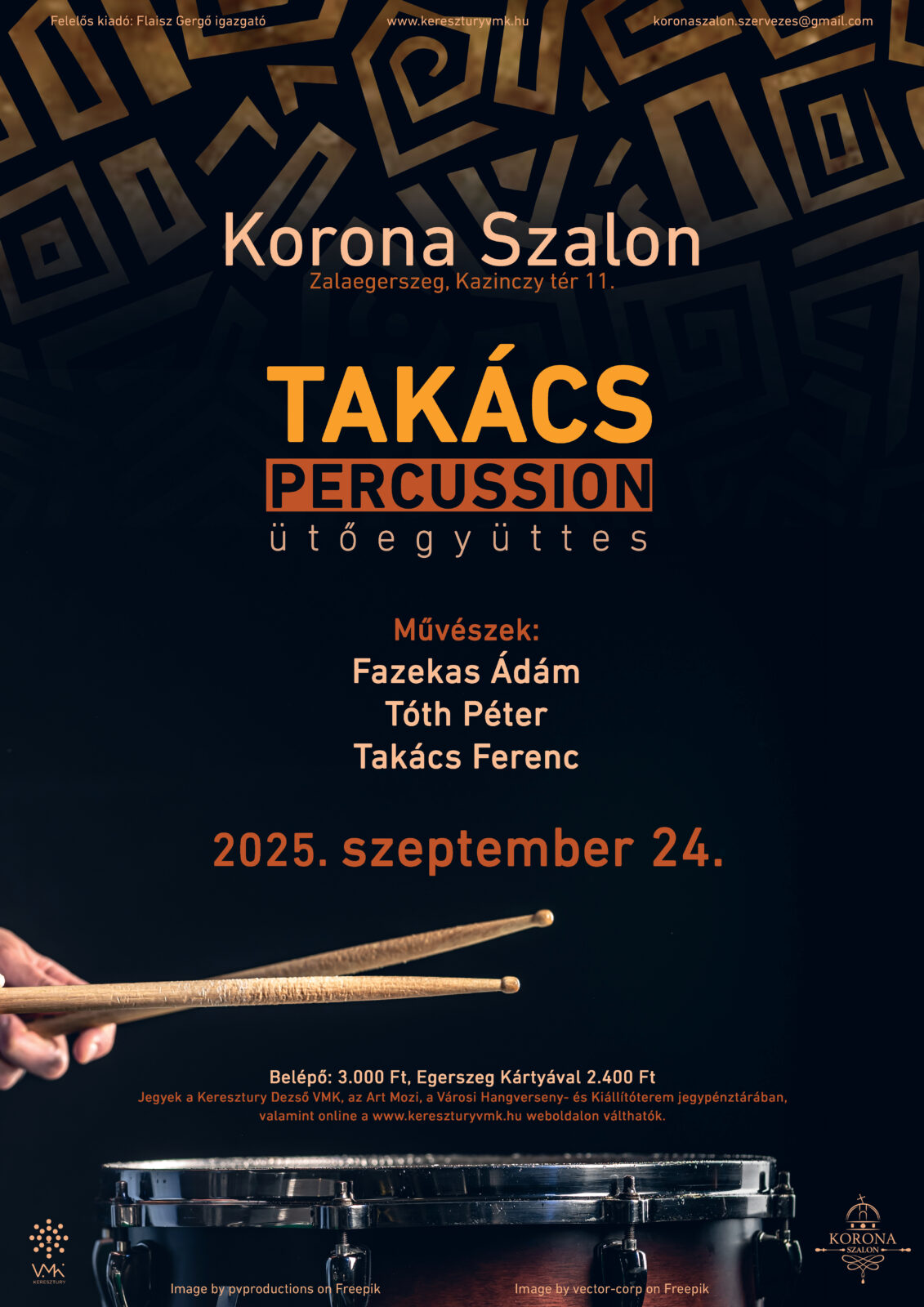 Jegyek válthatóak nyitvatartási időben a Városi Hangverseny-és Kiállítóterem, a Keresztury Dezső VMK és az Art Mozi jegypénztáraiban, valamint online ITT.
