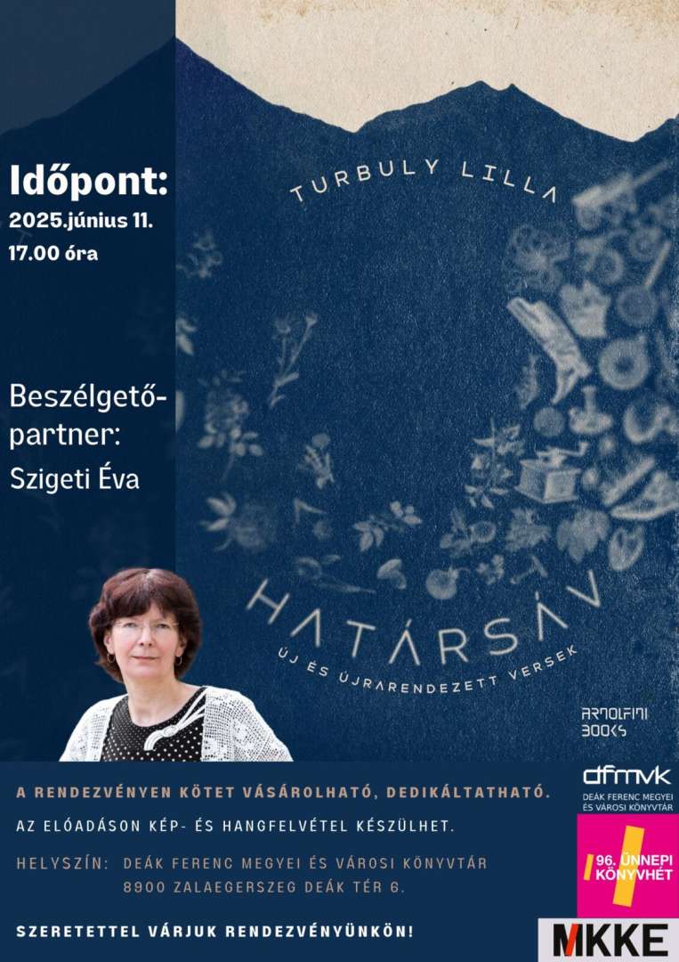 Turbuly Lilla Határsáv című kötetének bemutatóján a szerző beszélgetőtársa Szigeti Éva lesz.