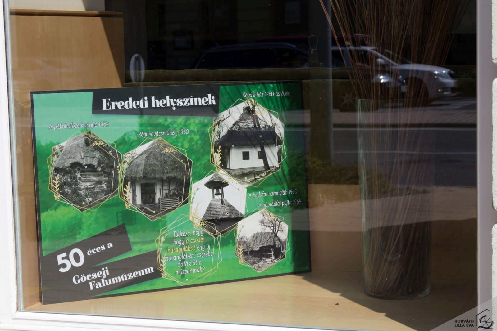 A fejlesztés előtt álló falumúzeum ötven évét szeretnék bemutatni és nyár lévén nem a közönséget invitálják egy belső térben megrendezett kiállításra, hanem a múzeum települt ki a szabadba. Egészen pontosan a város főutcájára. A Kossuth utcai és Széchenyi téri kirakatokban megtalálható tablókon mutatják be a skanzen elmúlt ötven évét a házak eredeti helyszínének bemutatásától kezdve az építési munkákon át egészen napjaink hangulatáig. Nem hagyhatták ki a falumúzeumban forgatott filmek kulisszatitkait, a mesterségbemutatók adta élmények képes bemutatását, az itt fellelhető állat- és növényvilágot.