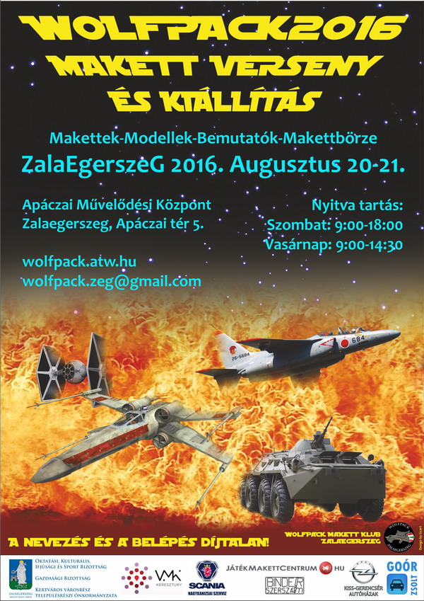 Az Apáczai Művelődési Központ és annak makettező klubja szeretettel meghív minden érdeklődőt 2016. augusztus 20-21-én a WOLFPACK 2016 nemzetközi makett versenyre és kiállításra.
