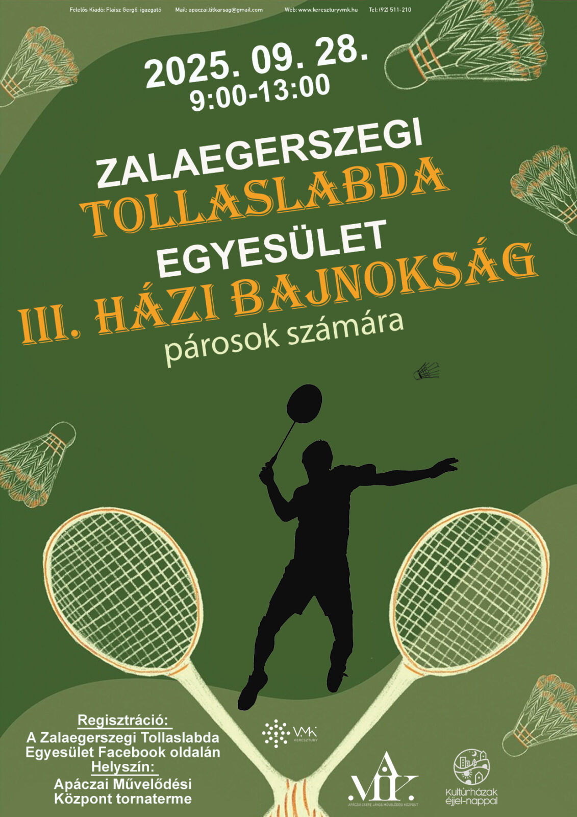• Regisztráció a Zalaegerszegi Tollaslabda Egyesület csoportján keresztül lehetséges.