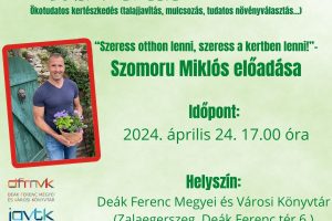 Sok szeretettel meghívjuk Önöket könyvtárunkba megrendezésre kerülő Zöld könyvtári Esték programsorozat következő előadására. Vendégünk Szomoru Miklós.